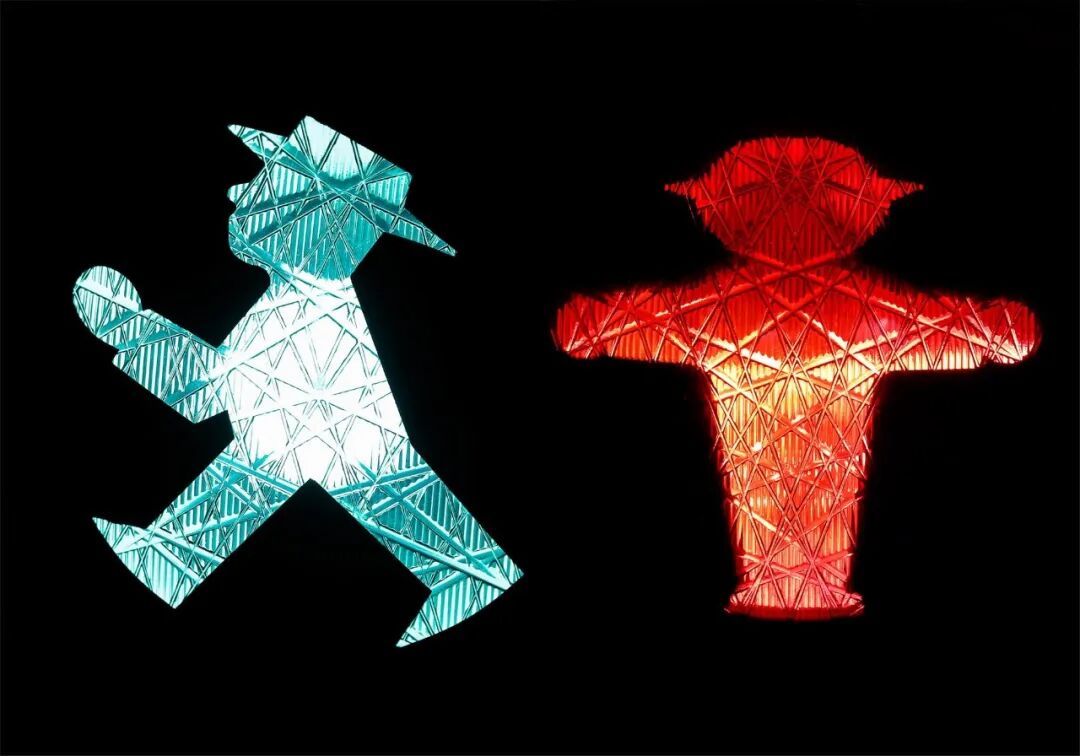 这是2020年11月12日在德国首都柏林拍摄的“红绿灯小人”图案的拼版照片。新华社记者单宇琦摄