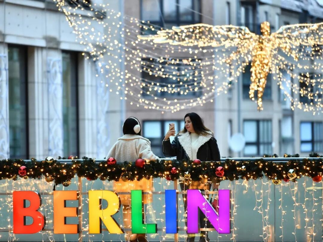 2023年12月21日,人们在德国柏林一家购物中心拍照留念。新华社记者任鹏飞摄