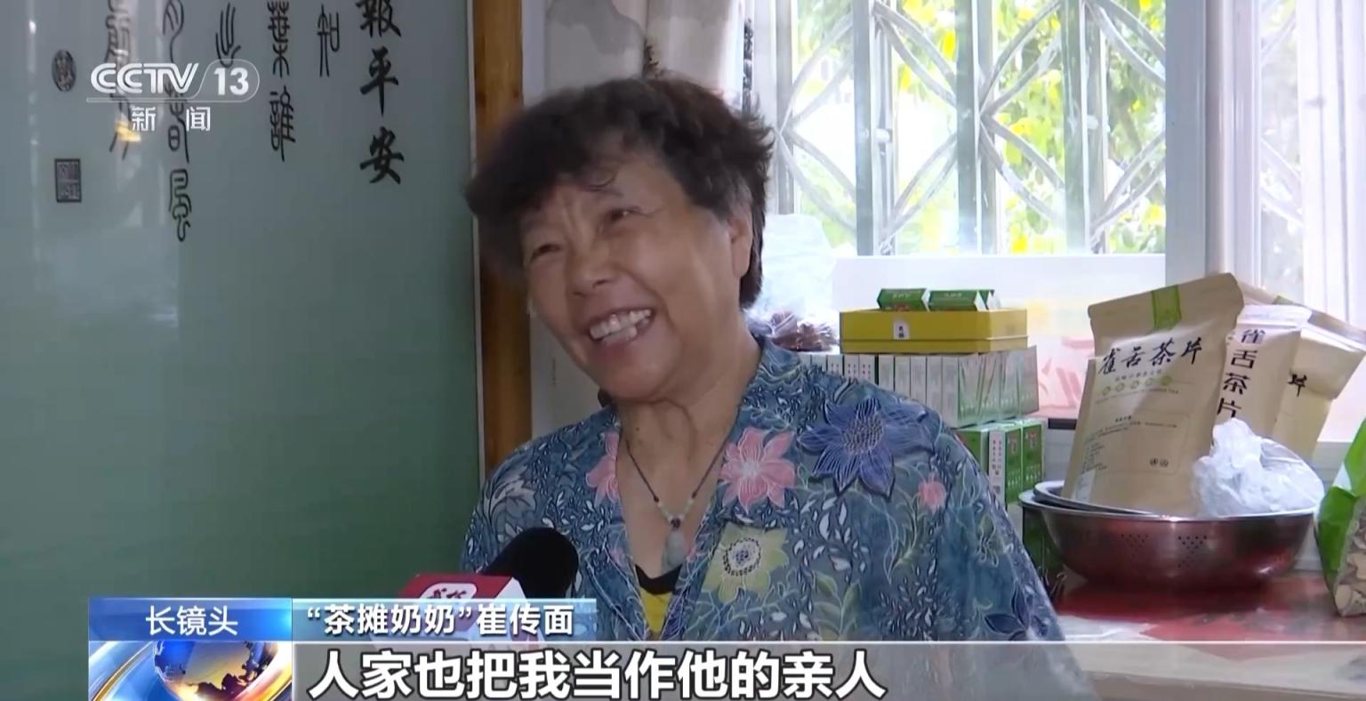 “茶摊奶奶”崔传面:虽然是一点茶水,我觉得人家是口渴了来喝点水,就能感受到,到了南京就像到了家一样的温暖。虽然事情不大,我觉得把任何人当作自己的亲人,人家也把我当作他的亲人。